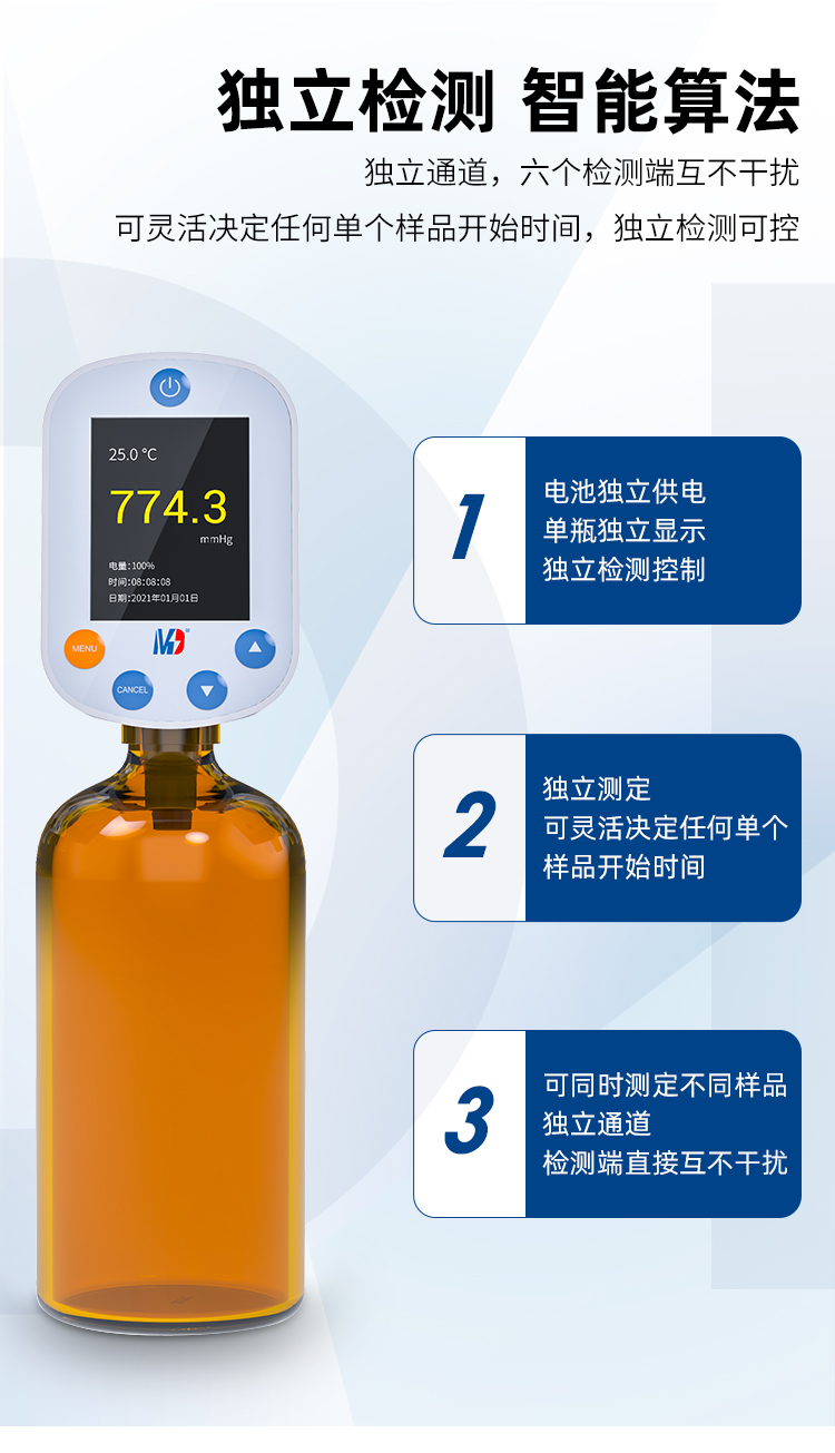 2、六個獨立測試通道,培養瓶間互不干擾