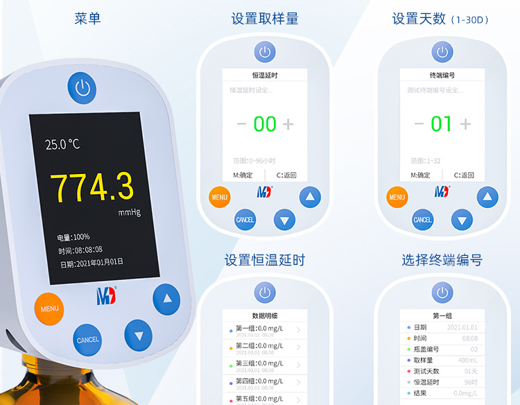 7、測量范圍廣,無需稀釋測定BOD:0-4000mg/L,若稀釋測量范圍更廣